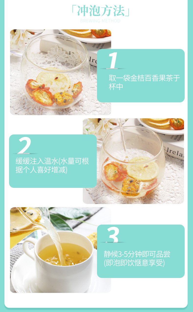 • 商品名称:金桔柠檬百香果茶水果茶包蜂蜜柠檬片花茶青橘冲饮泡水喝