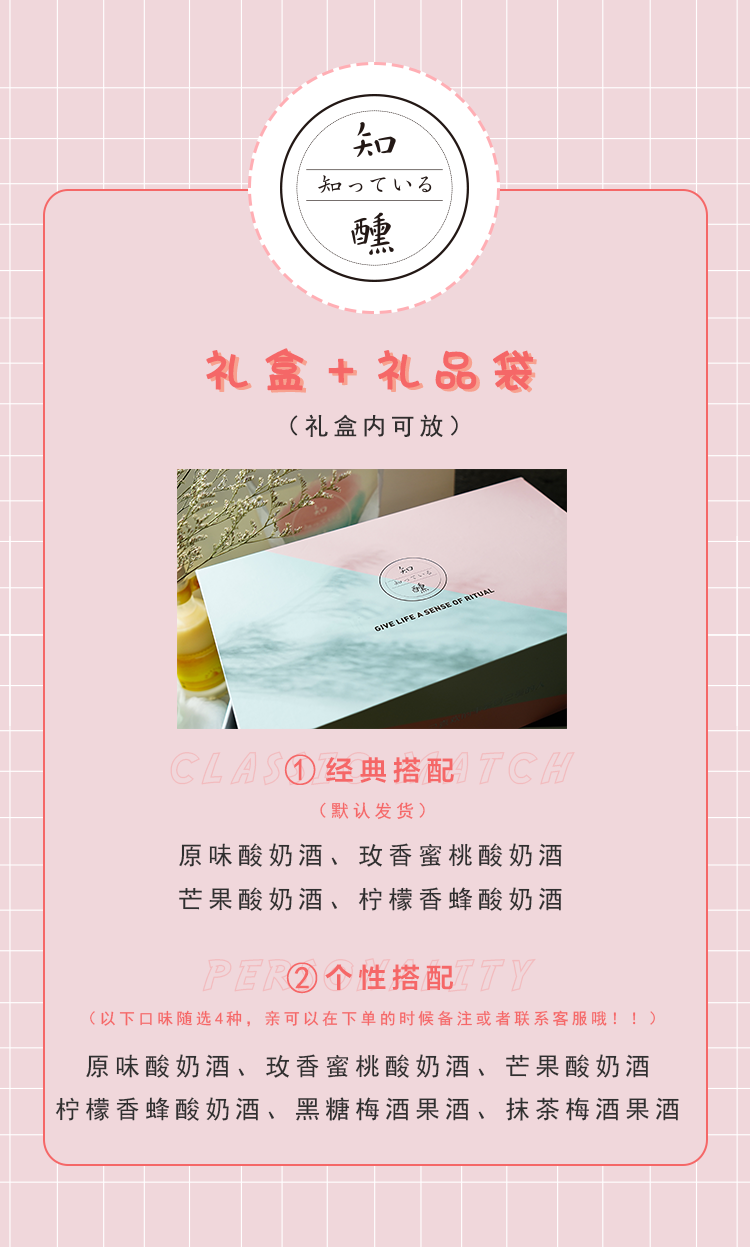 • 商品名称:【生日礼盒装4瓶】知醺酸奶酒果酒女士低度微醺女生酒高颜值礼品