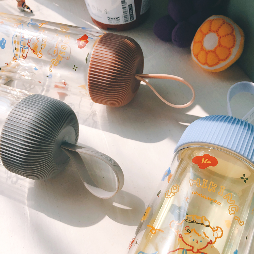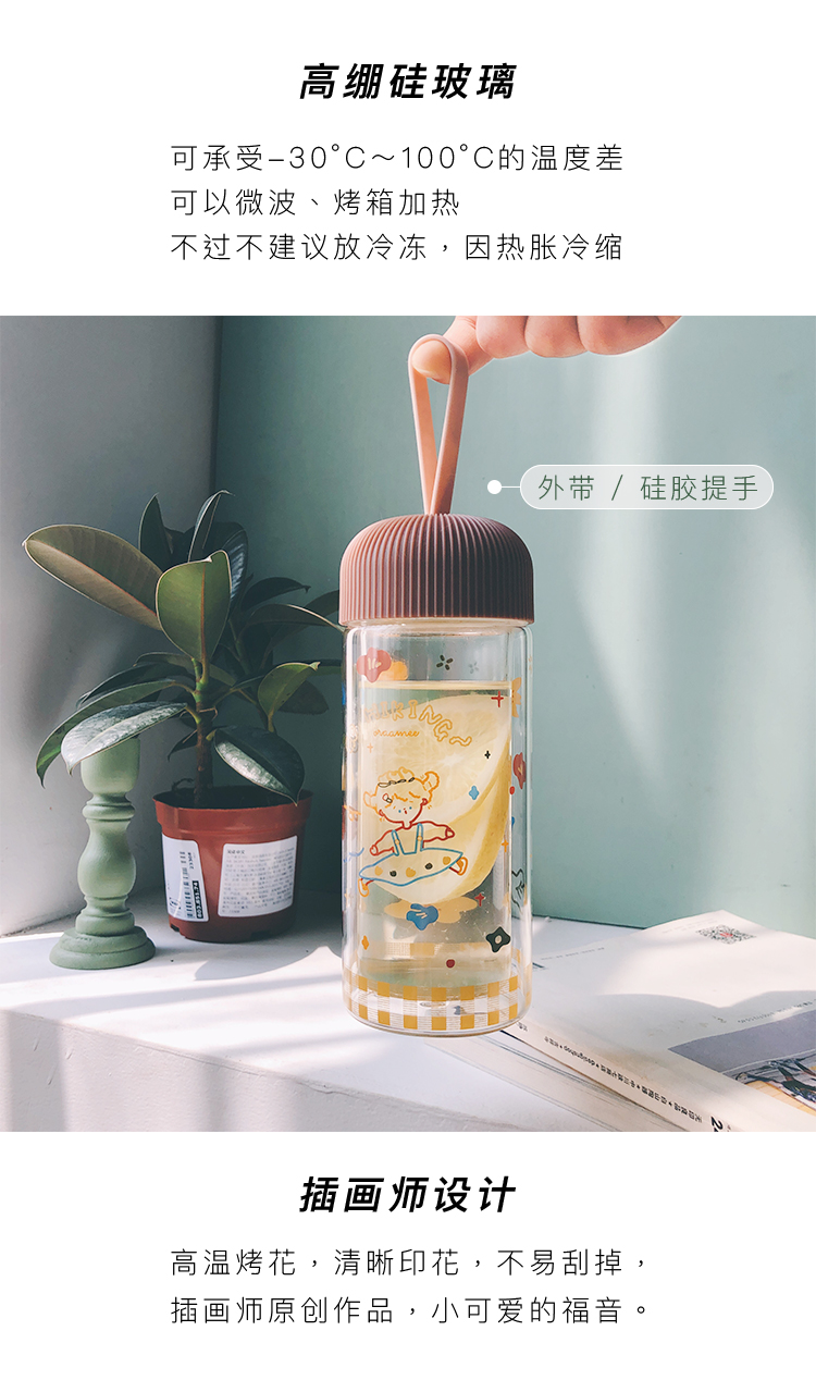 • 商品名称:渔夫与橘鸟原创插画双层玻璃杯带提手隔热耐高温小巧清新少女花花