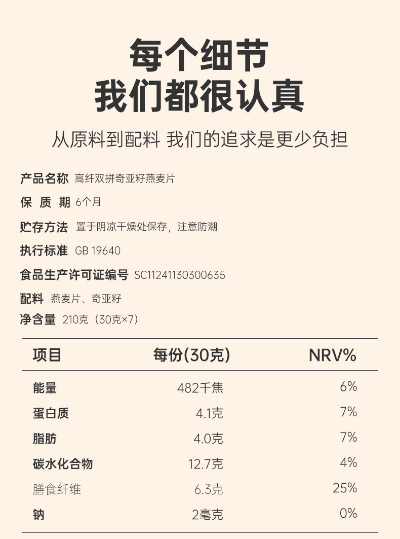 • 商品名称:田园主义奇亚籽谷物燕麦片原味免煮燕麦冲饮即食饱腹代餐轻食早餐