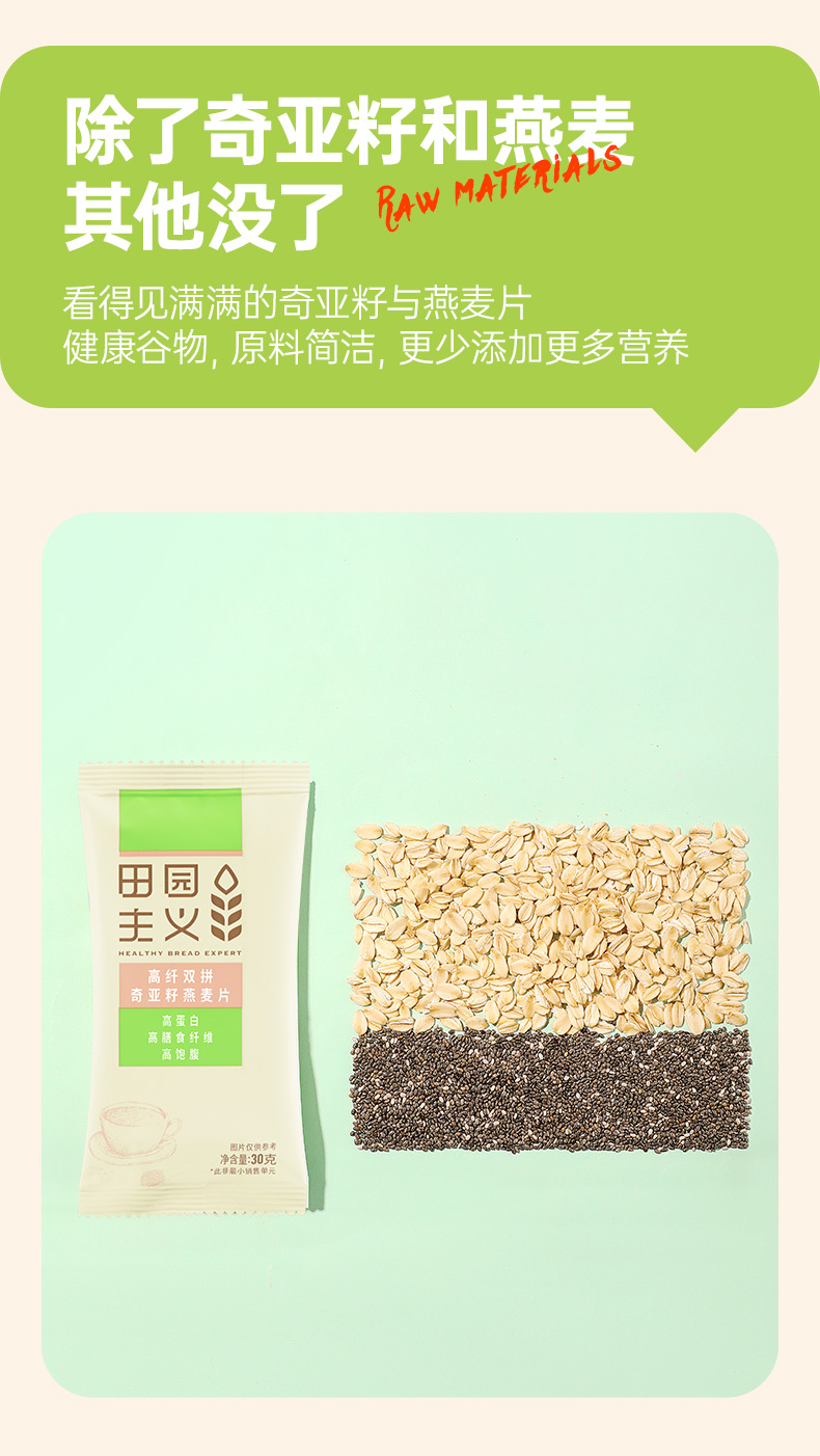田园主义奇亚籽谷物燕麦片原味免煮燕麦冲饮即食饱腹代餐轻食早餐
