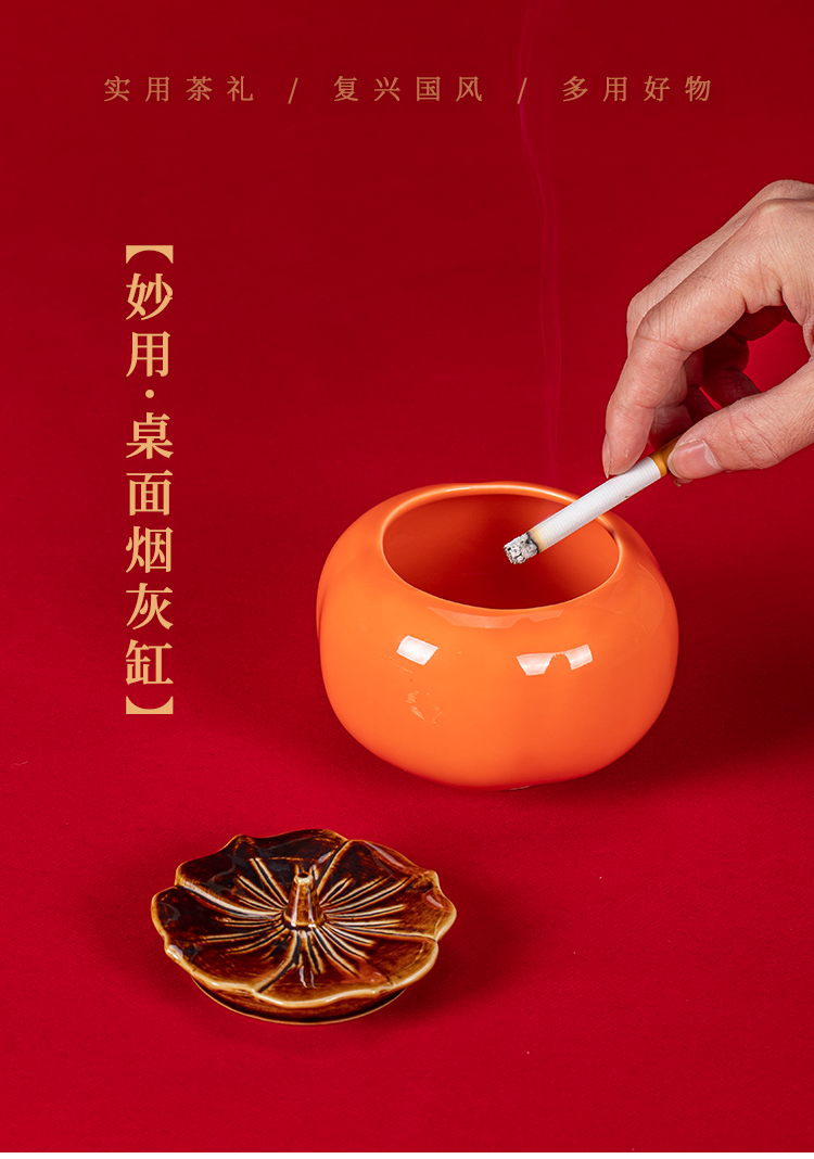 • 商品名称:创意柿子烟灰缸客厅陶瓷个性潮流大号带盖防飞灰家用茶几摆件礼品
